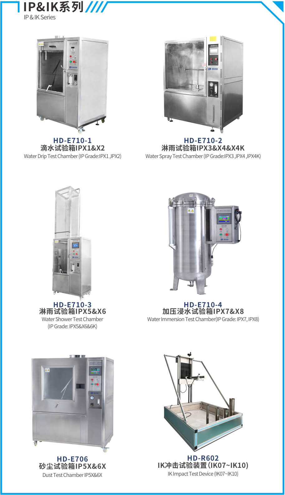 IP&IK防護測試:淋雨試驗箱、砂塵試驗箱與沖擊試驗裝置適用于戶外燈具和智能路燈的防水測試及燈具照明產品的外殼抗沖擊強度測試。