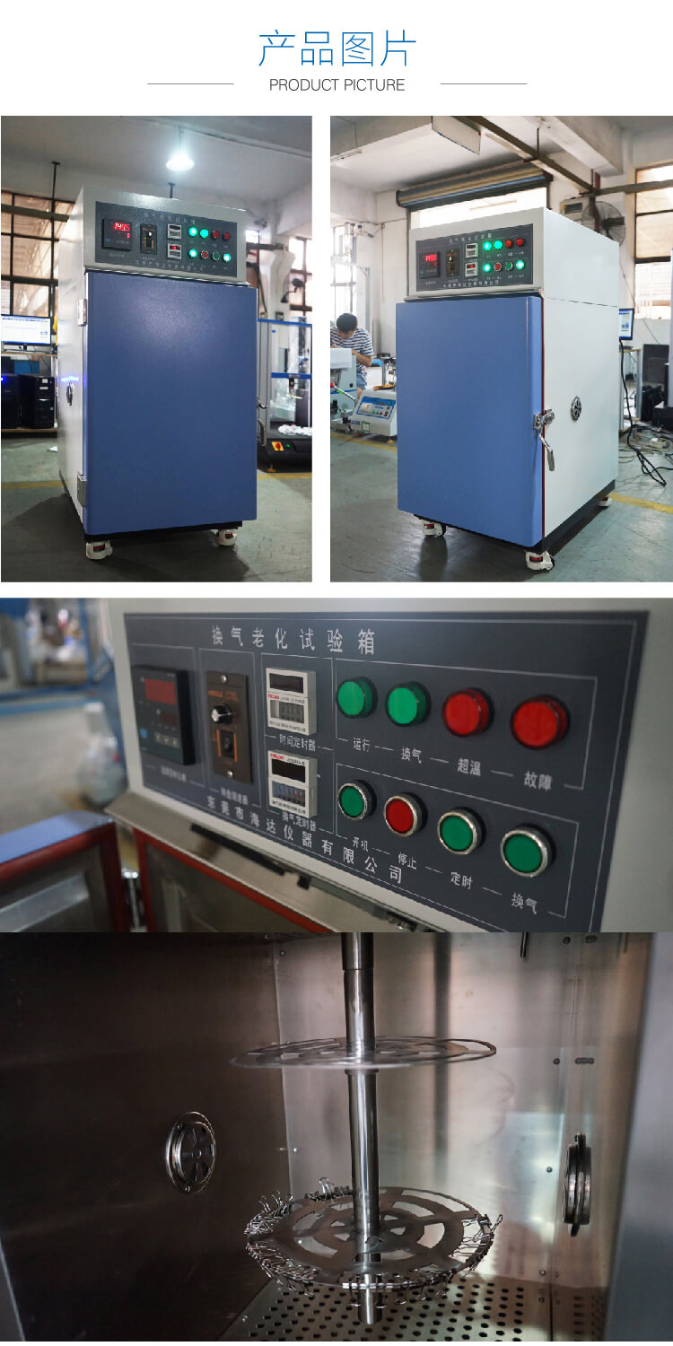 換氣老化試驗機適用于電線類、皮類、塑料類、橡膠類、布類等受熱前和受熱后變化特性。針對電線類在受熱時為維持箱內新鮮的空氣,故特制換氣量的調節。