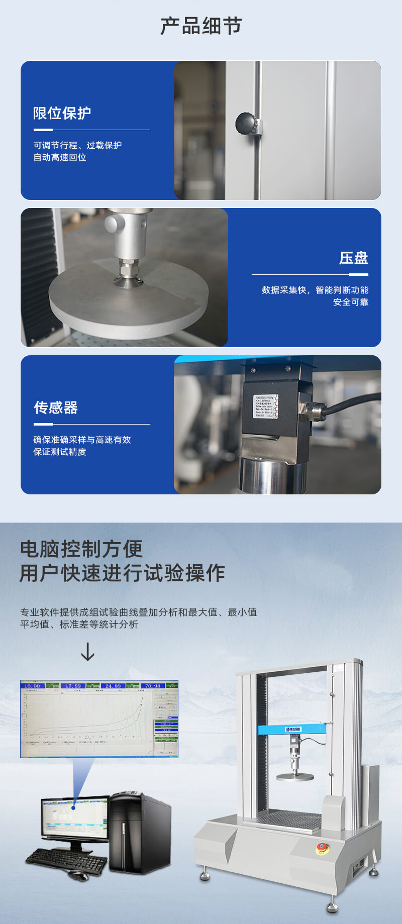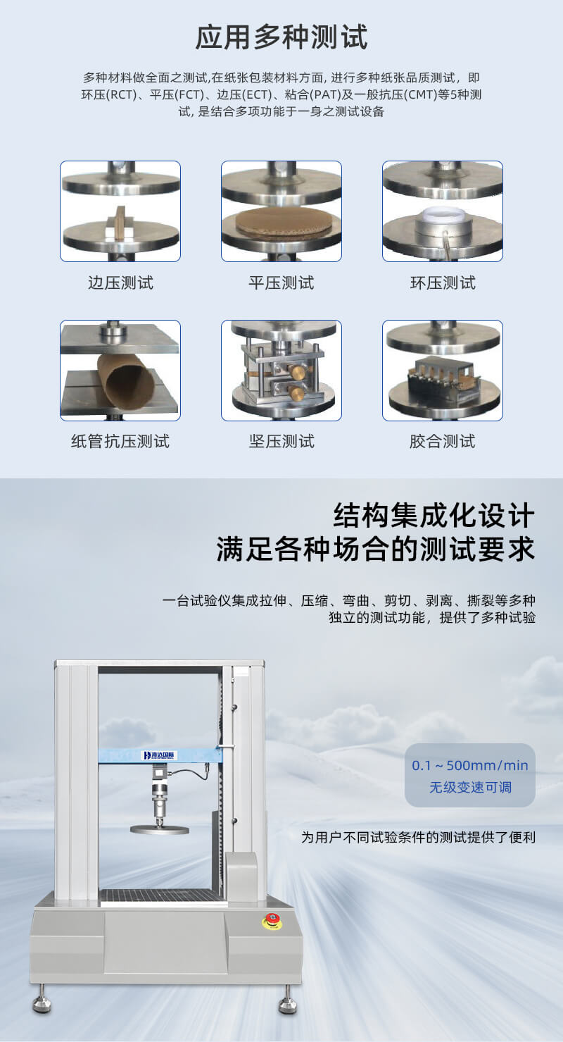多功能拉壓強度試驗儀專業適用于復合材料、包裝材料、背板材料、塑料管、無紡布、混凝土、膠粘劑、橡膠等非金屬材料和醫療器械、線纜、鋼材等金屬產品的拉伸、抗彎、壓縮、膠合強度、撕裂、穿刺力、開啟力、解卷力、拔開力等性能測試。