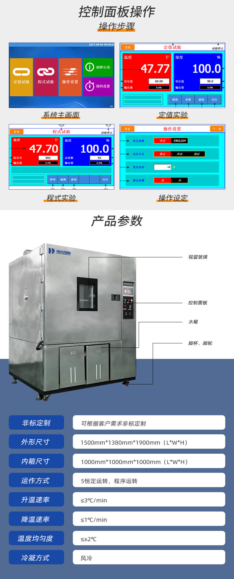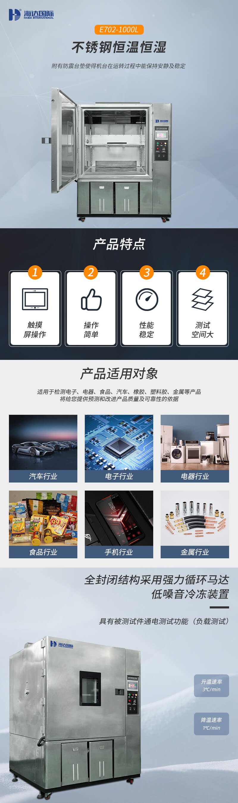 該系列不銹鋼款交變濕熱試驗(yàn)箱,主要用于模擬新型材料、電工、車輛、金屬、電子產(chǎn)品等在運(yùn)輸、儲存、使用過程中可能會遇到的嚴(yán)酷高溫、低溫或濕熱環(huán)境;或高溫、低溫、濕熱交變環(huán)境。